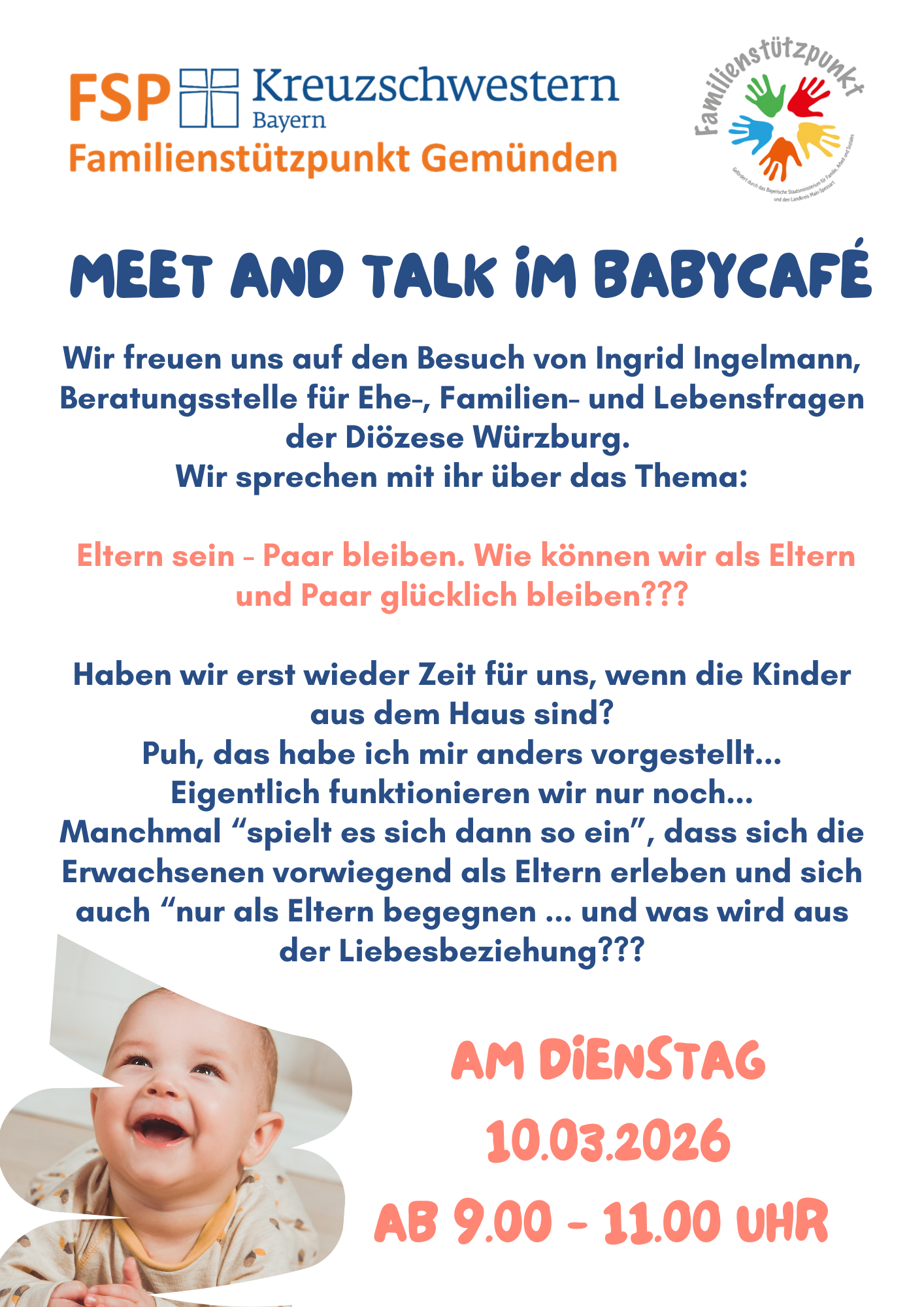 Babycafé im Familienstützpunkt von 9.00 - 11.00 Uhr Für alle Schwangeren und Eltern/Großeltern mit Kindern von 0 - einem Jahr.